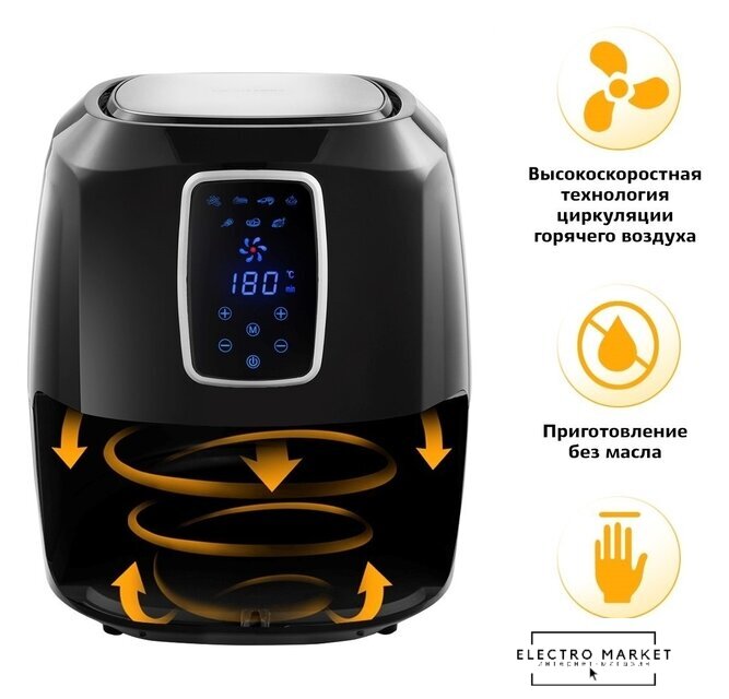 1800 Вт, металлический (ТЭН) нагревательный элемент, сенсорное управление, 6 л