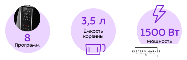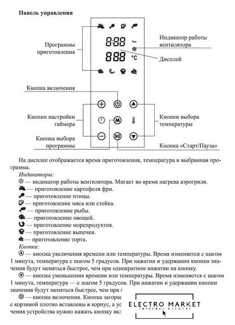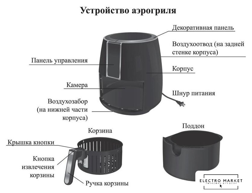 | Комплект поставки | - аэрогриль;- корзина с ручкой;- поддон. |