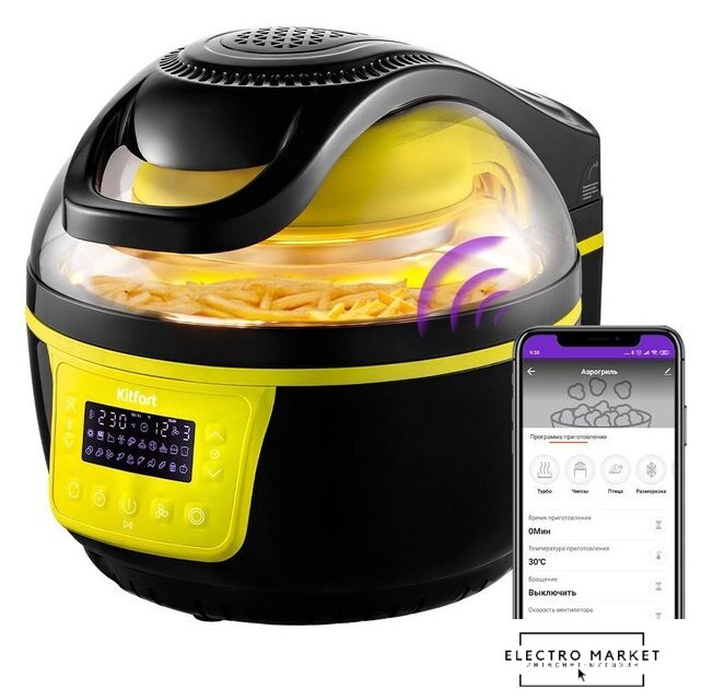 | Комплект поставки | - аэрогриль- вертел- держатель вертела- противень- решетка- решетка для стейков- вращающаяся корзина- шампуры- щипцы- фильтр |