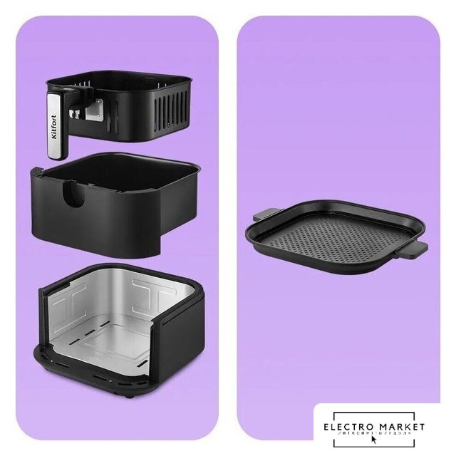 | Комплект поставки | корзина с антипригарным покрытием; поддон с антипригарным покрытием; панель для гриля; стеклянная крышка; жаростойкие ручки; инструкция |