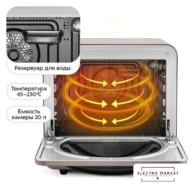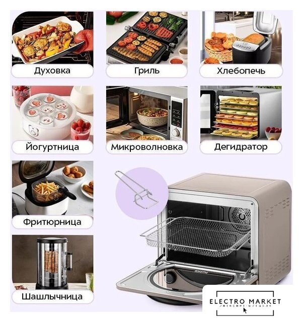 | Комплект поставки | противень; решётка; сетчатая корзина; ручка для извлечения; резервуар для воды |