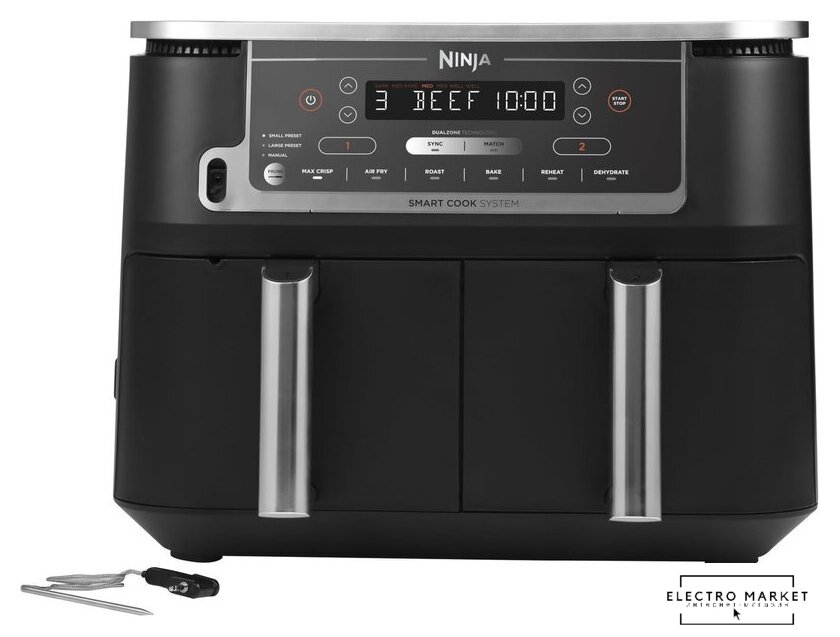 Комплект поставки | 1 x основной прибор2 отсека для жарки горячим воздухом с антипригарным покрытием2 x решетка для жарки с антипригарным покрытием1 x цифровой термометр для жарки1 x руководство по эксплуатации1 x краткое руководство |