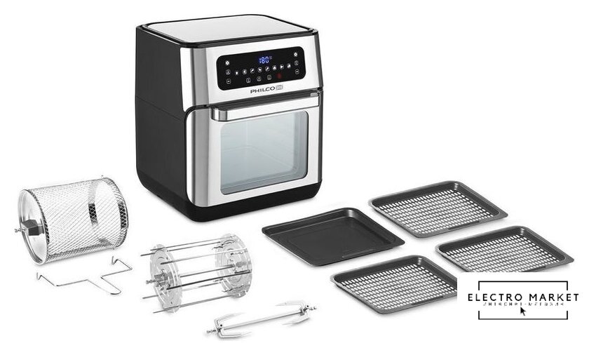 | Комплект поставки | Вращающийся вертелБарабан для жарки3 противня на решетке1 полная форма для запеканияНабор иголок для шпажекПредохранительная рукоятка |
