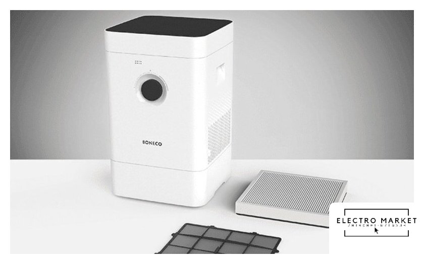 климатический комплекс, 2-ступ. фильтр, расход воды до 400 мл/ч, для помещения до 60 м², фирменное приложение, шум 25 дБ, питание: сеть, цвет белый