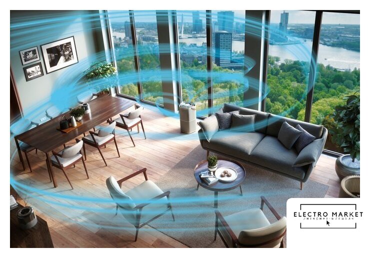 очиститель, 5-ступ. фильтр, для помещения до 92 м², фирменное приложение, шум 17 дБ, питание: сеть, цвет серый