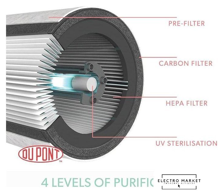 очиститель, для помещения до 130 м², шум 0 дБ, питание: сеть, цвет белый/черный