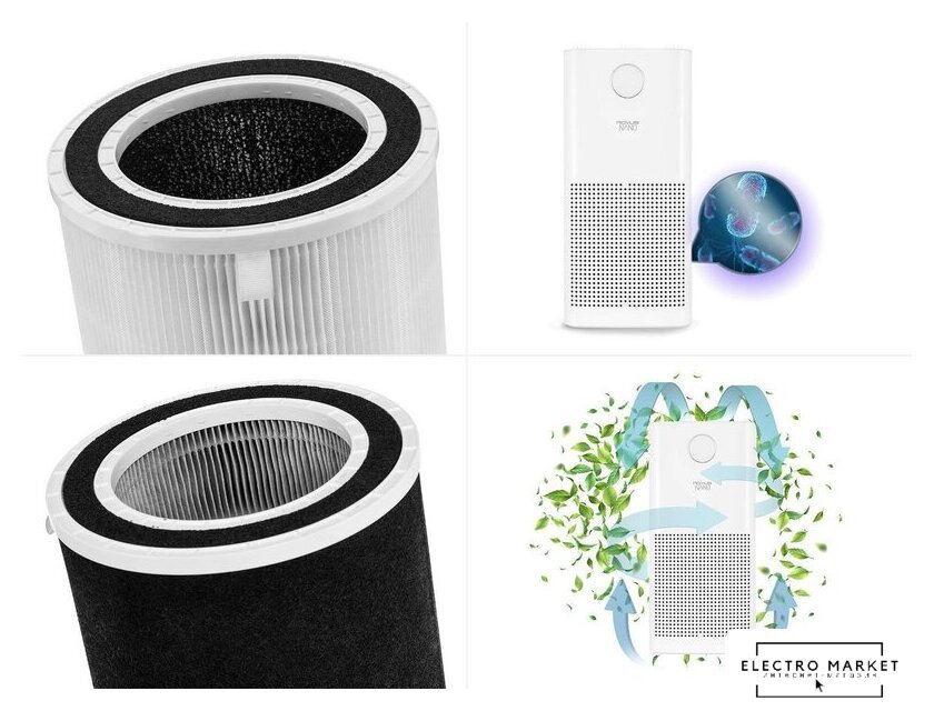 очиститель, для помещения до 120 м², фирменное приложение, шум 22 дБ, питание: сеть, цвет белый/черный
