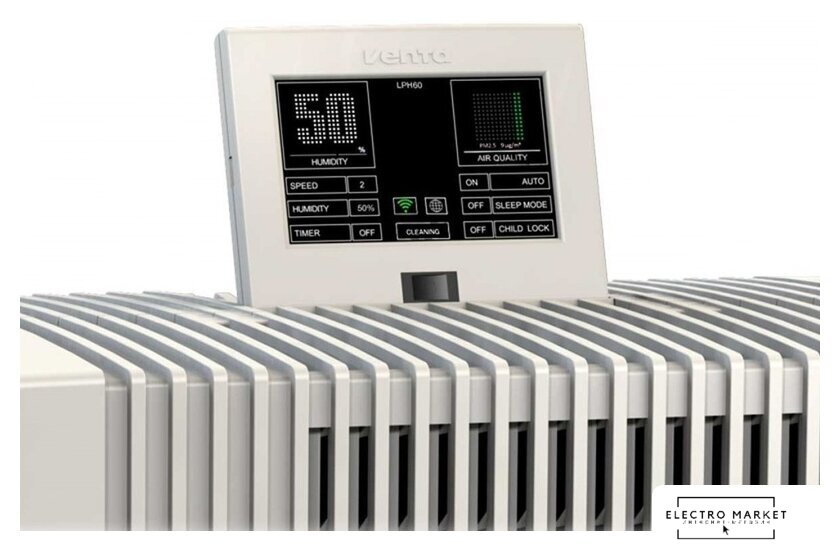 мойка воздуха, 1-ступ. фильтр, для помещения до 90 м², фирменное приложение, шум 27 дБ, питание: сеть, цвет черный