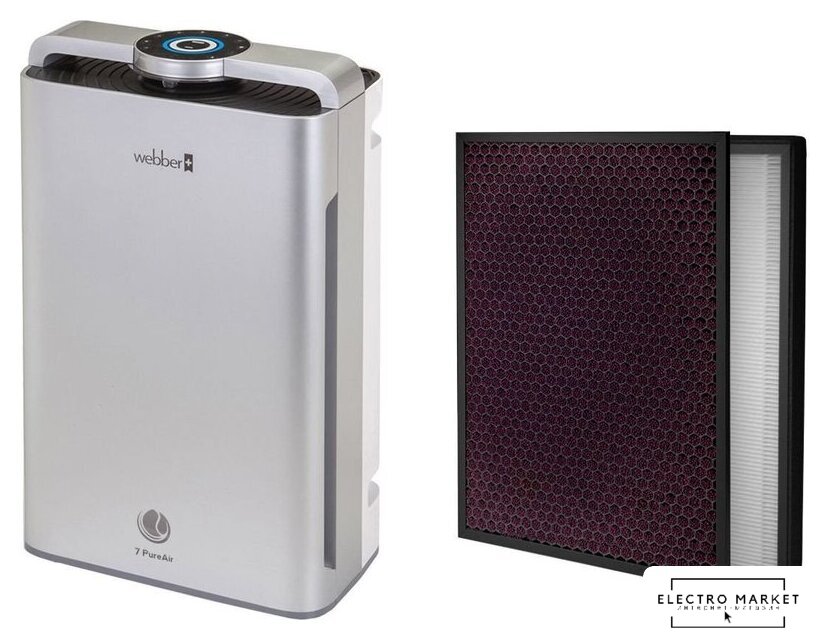 очиститель, 5-ступ. фильтр, для помещения до 80 м², шум 15 дБ, питание: сеть, цвет серебристый/темно-серый