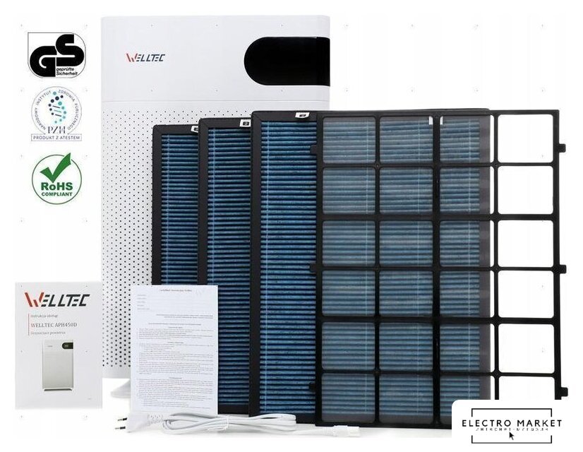 очиститель, для помещения до 120 м², фирменное приложение, шум 22 дБ, питание: сеть, цвет белый/черный