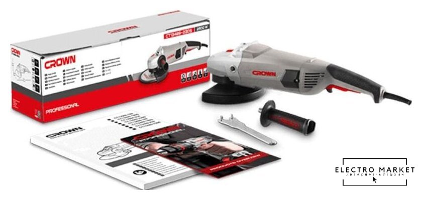 диаметр диска: 230 мм, 2350 Вт, 6500 об/мин холостого хода, питание: сеть, 6 кг