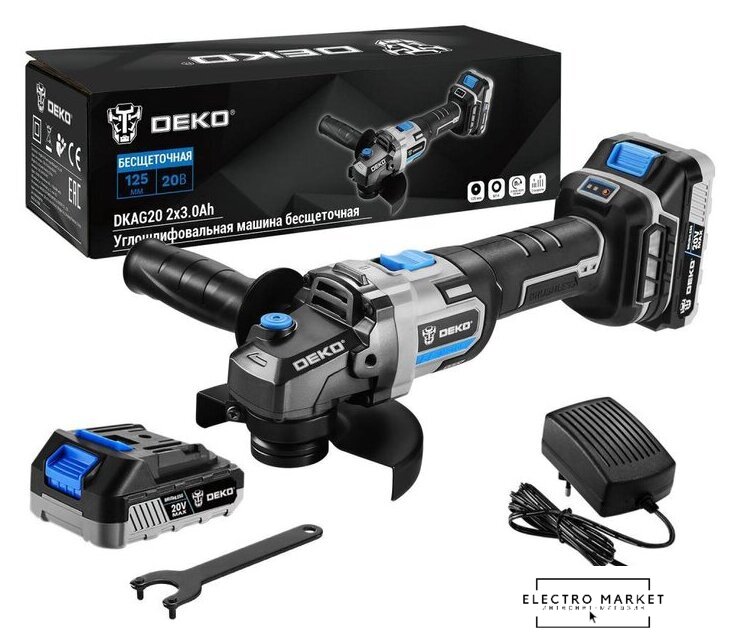 Комплект поставки | - Углошлифовальная машина;- Вспомогательная ручка;- Гаечный ключ;- Аккумулятор 3,0 Ач - 2 шт;- Зарядное устройство;- Инструкция;- Коробка. |
