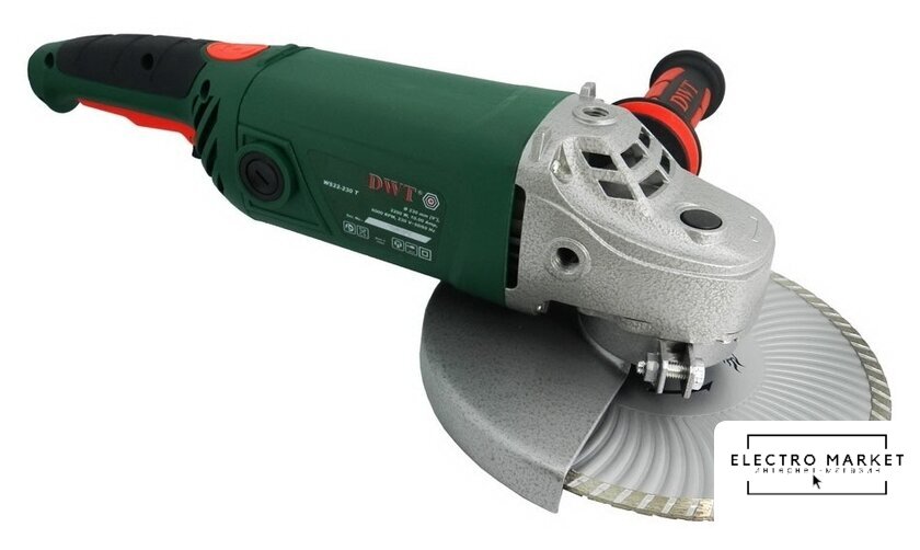 диаметр диска: 230 мм, 2600 Вт, 6600 об/мин холостого хода, питание: сеть, 6 кг