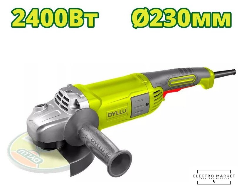 диаметр диска: 230 мм, 2400 Вт, 6500 об/мин холостого хода, питание: сеть