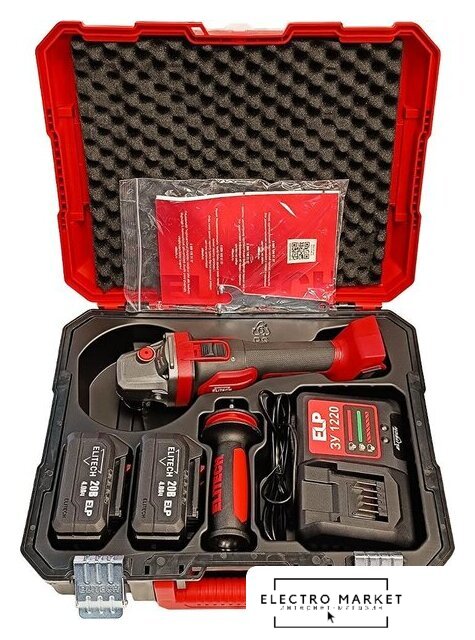 | Комплект поставки | - Аккумуляторная шлифмашина;- 2 аккумулятора 20V 4.0 Ah;- Зарядное устройство ЗУ 1220;- Кожух 125 мм;- Ключ;- Дополнительная рукоятка;- Инструкция;- Кейс. |
