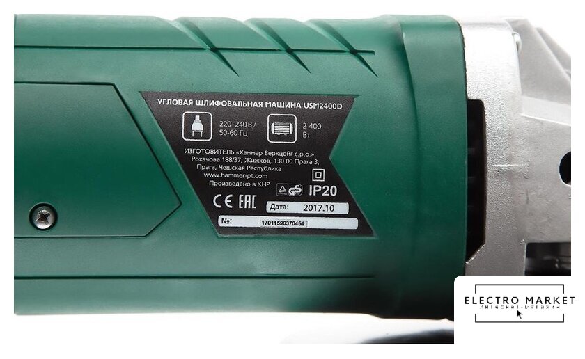 диаметр диска: 230 мм, 2400 Вт, 6400 об/мин холостого хода, питание: сеть, 4.9 кг
