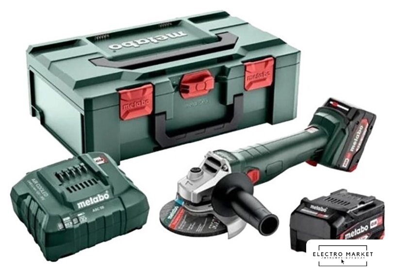 | Комплект поставки | - Защитный кожух- Опорный фланец- Гайка с двумя торцевыми отверстиями- Дополнительная рукоятка- Ключи с двумя отверстиями- 2 аккумуляторных блока Li-Power (18 В / 4,0 А*ч)- Зарядное устройство ASC 55 "AIR COOLED"- metaBOX 165 L |