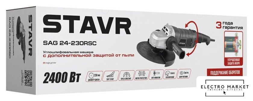 диаметр шлифкруга: 230 мм, 2600 Вт, 6600 об/мин холостого хода, 6.5 кг