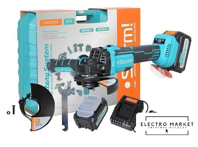 | Комплект поставки | - Шлифмашина,- зарядное устройство,- аккумуляторная батарея,- защитный кожух,- боковая рукоятка,- фланцевый ключ,- винт с гайкой,- пластиковый кейс. |