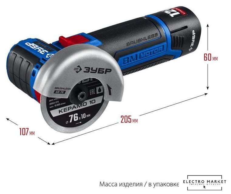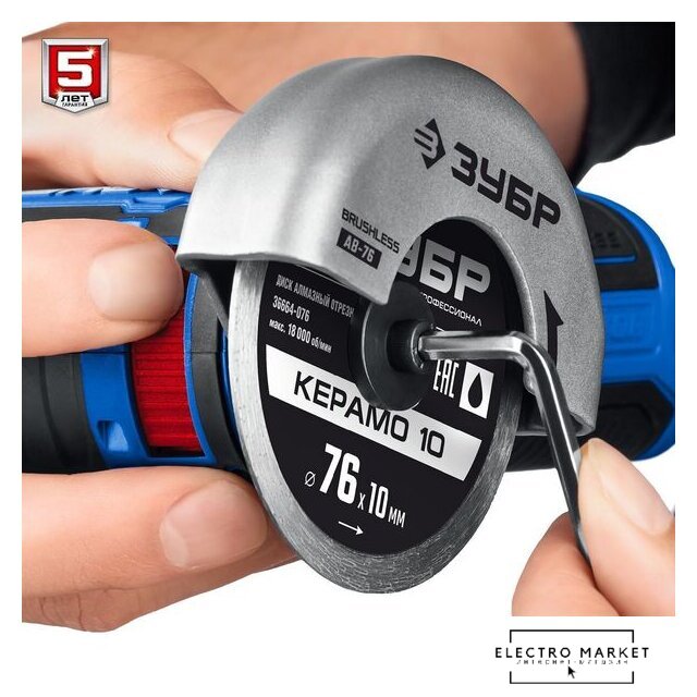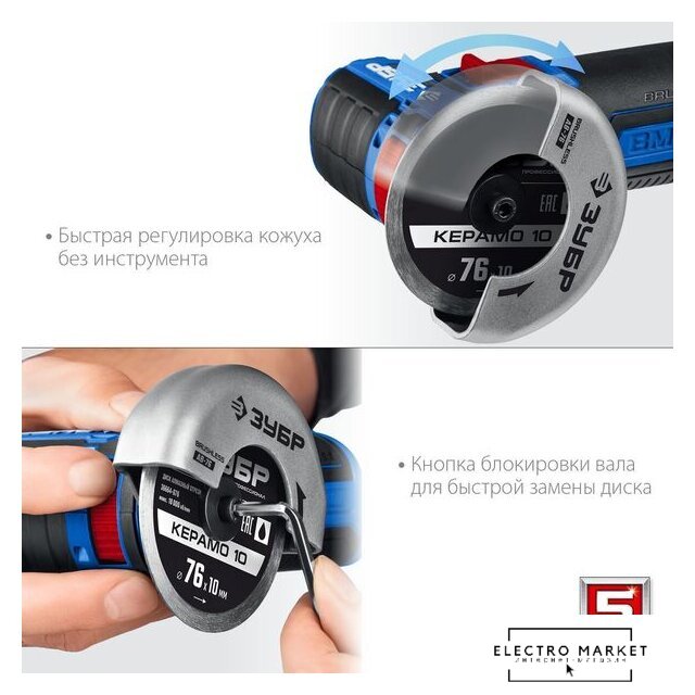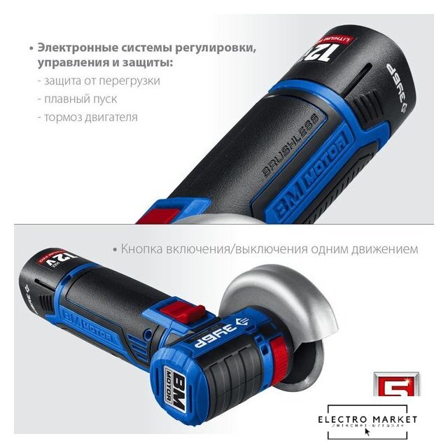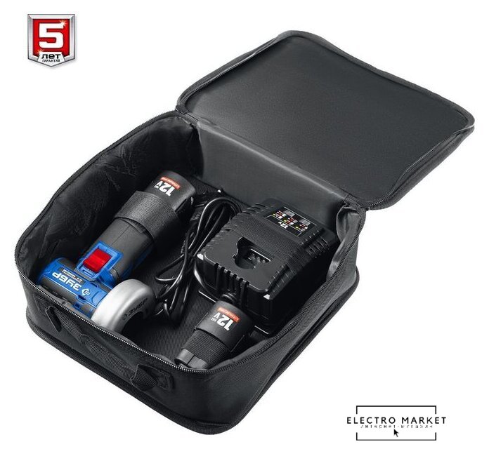 | Комплект поставки | - Машина углошлифовальная 1- Аккумулятор 2- Быстрозарядное устройство 1- Кожух защитный 1- Ключ имбусовый 1- Сумка 1- Руководство по эксплуатации 1 |
