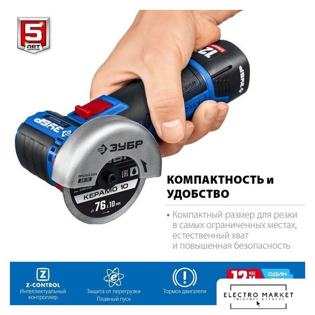 диаметр диска: 125 мм, 1700 Вт, 3000–10000 об/мин холостого хода, регулировка скорости оборотов, питание: сеть