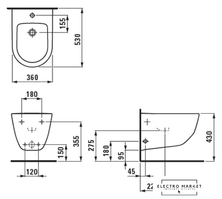 подвесной монтаж, полукруглая чаша, горизонтальный выпуск, с отверстием под смеситель, с переливом, без крышки, с инсталляцией, 36x52x30 см, белый цвет