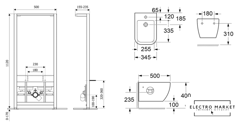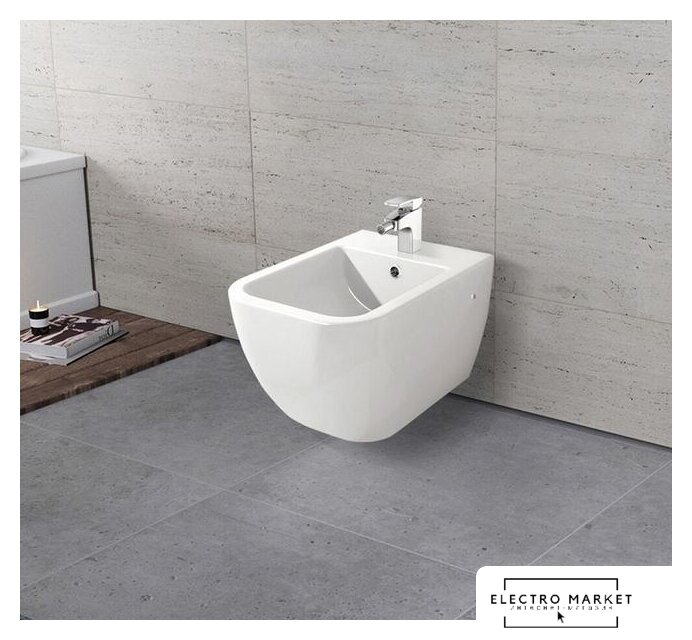 подвесной монтаж, прямоугольная чаша, горизонтальный выпуск, с отверстием под смеситель, с переливом, без крышки, с инсталляцией, 36x50x30 см, белый цвет