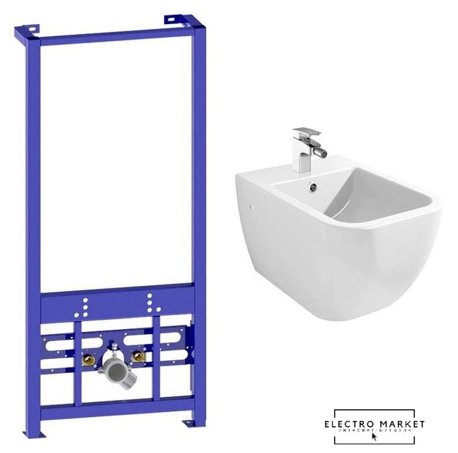 подвесной монтаж, овальная чаша, горизонтальный выпуск, с отверстием под смеситель, с переливом, без крышки, с инсталляцией, 36x52x29.5 см, белый цвет