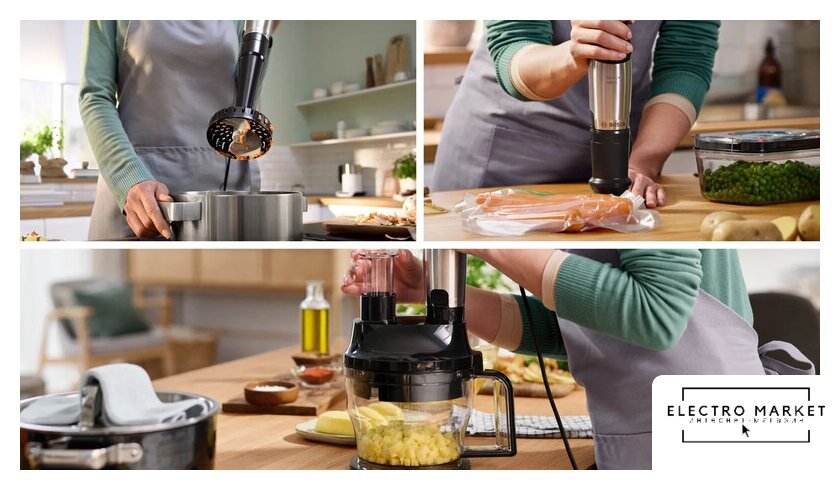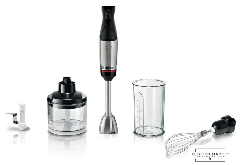 Комплектация | Блендер из нержавеющей стали с ножем QuattroBladeИзмельчитель для специй, орехов, сыра, мяса и многого другого (полезный объем 500 мл)Венчик из нержавеющей стали для взбивания сливок или яичного белкаМерный стакан в комплекте |