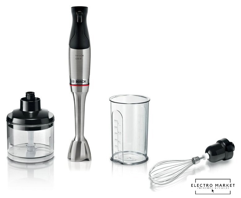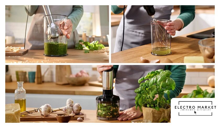Комплектация | Блендер из нержавеющей стали с ножем QuattroBladeИзмельчитель для специй, орехов, сыра, мяса и многого другого (полезный объем 500 мл)Венчик из нержавеющей стали для взбивания сливок или яичного белкаМерный стакан в комплекте |