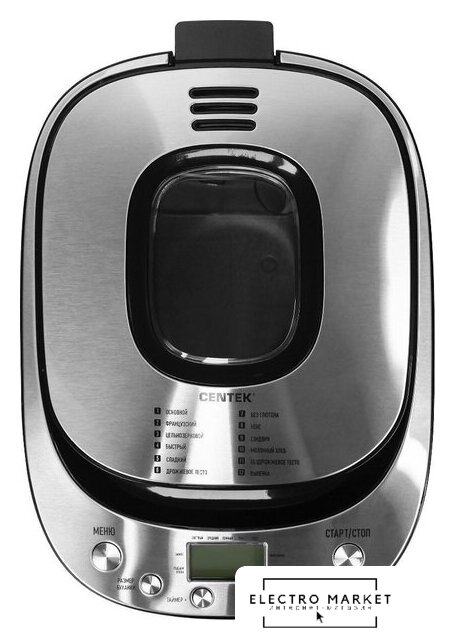 | Перечень режимов работы | «Основной хлеб», «Французский хлеб», «Цельнозерновой хлеб», «Быстрый хлеб», «Сладкий хлеб», «Дрожжевое тесто», «Хлеб без глютена», «Кекс», «Сэндвич», «Молочный хлеб», «Бездрожжевое тесто», «Выпечка» |