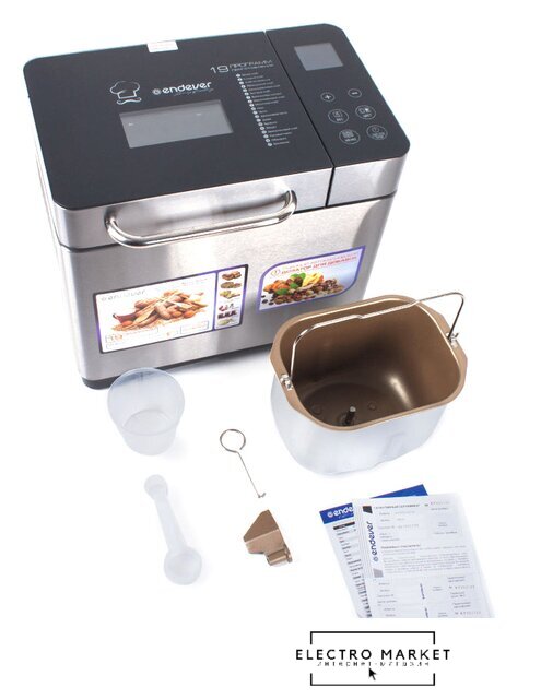 Комплект поставки | Антипригарная ёмкость для выпечки Мерный стаканМерная ложкаЛопасть для замешивания тестаКрюк для извлечения лопасти Руководство по эксплуатации |