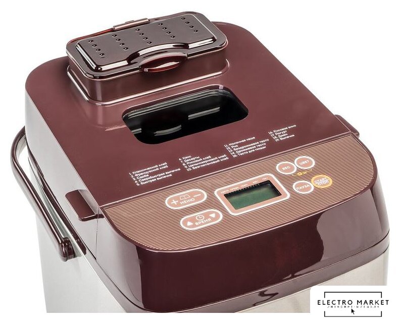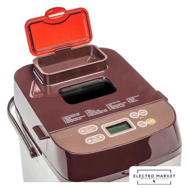 | Основные программы | безглютеновая выпечка, йогурт, кекс, молочная каша, французский хлеб, цельнозерновой хлеб (классический хлеб, рисовый хлеб, сдоба, быстрая выпечка, десерты, рис, бездрожжевое тесто, дрожжевое тесто, тесто для пиццы, русское вино, джем, выпечка) |