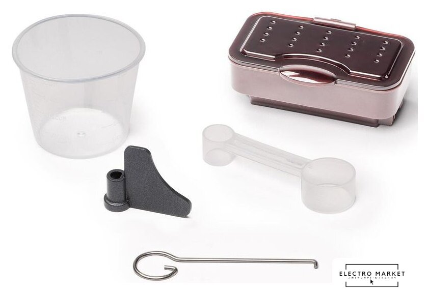 | Комплект поставки | - хлебопечь;- контейнер для выпечки;- лопасть для замешивания;- мерный стаканчик;- ложка-дозатор;- крючок для извлечения лопасти для замешивания;- книга рецептов;- руководство по эксплуатации;- потребительская тара. |