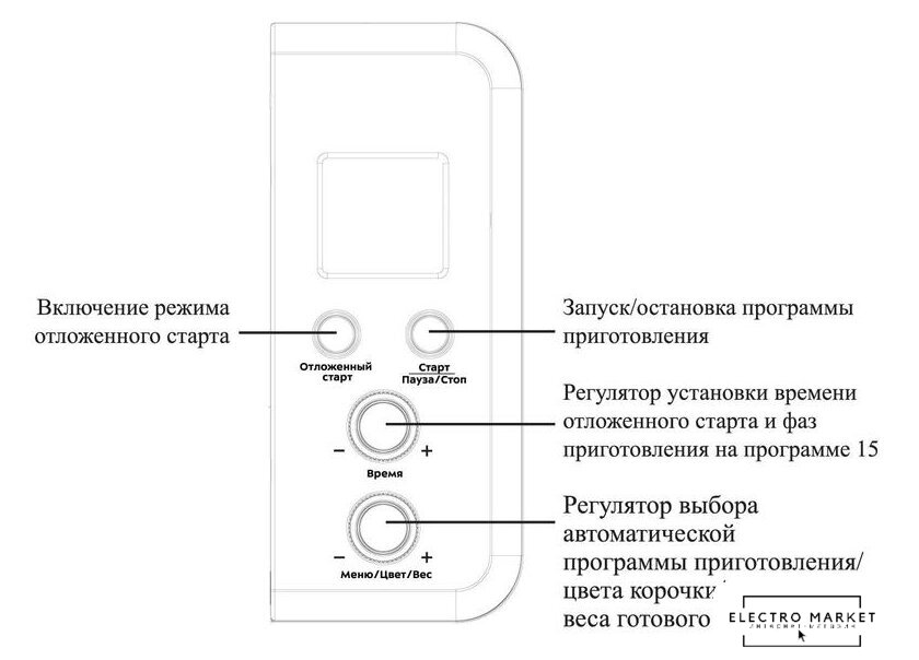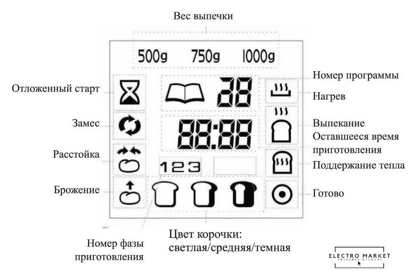 | Регулировка веса выпечки | (500/750/1000 г) |