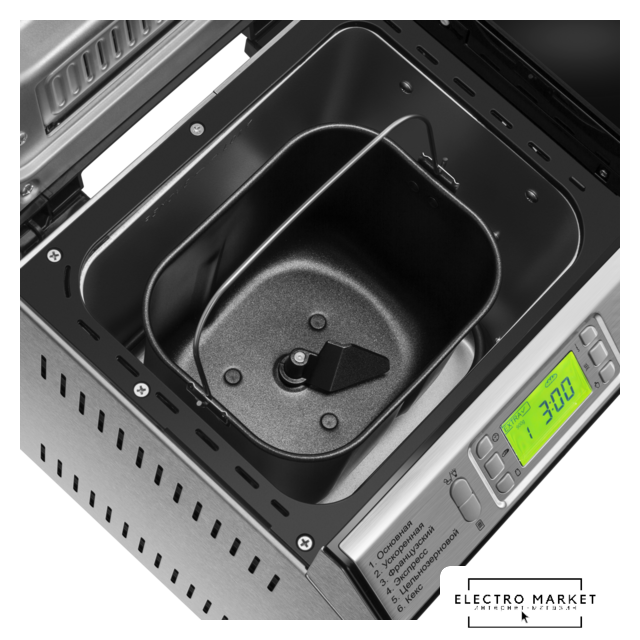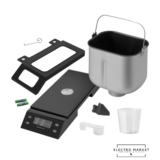 | Комплект поставки | - хлебопечь с формой для выпечки;- лопатка для замеса теста;- крюк для извлечения лопатки;- мерная ложка;- мерный стакан. |