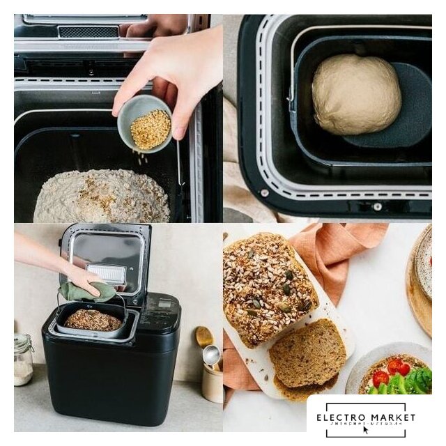 700 Вт, регулировка веса выпечки, 18 программ выпечки, выбор цвета корочки, замес теста