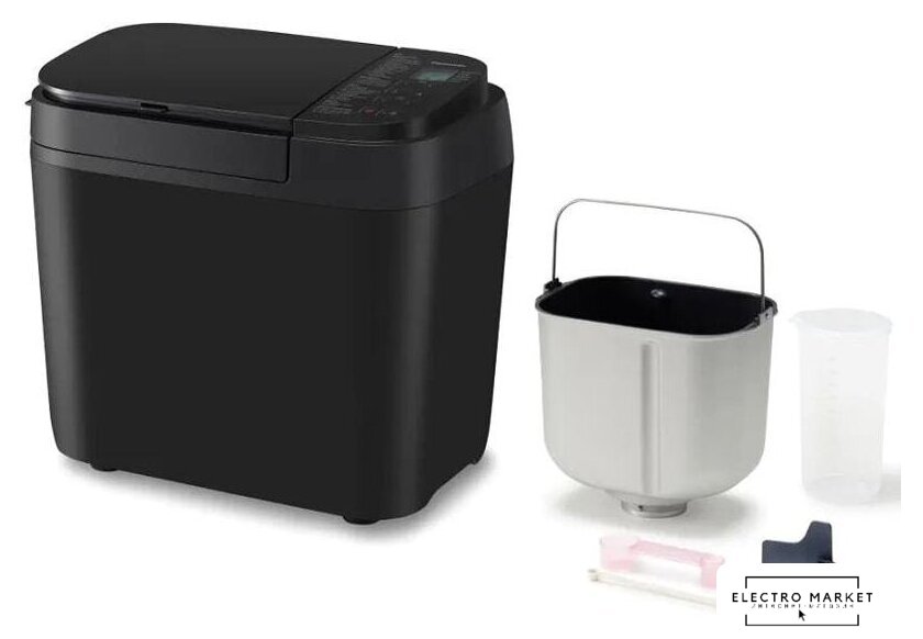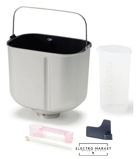 Комплект поставки | - хлебопечь;- чаша для выпечки;- лопатки для замеса теста;- мерная ложка 2 шт;- мерный стакан. |