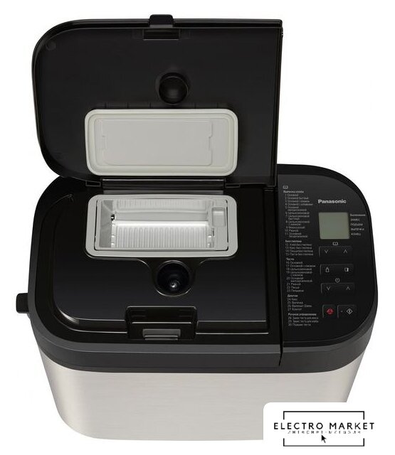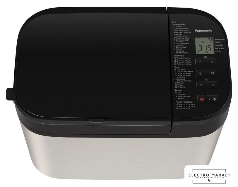| Перечень режимов работы | Авто меню (Хлеб):ОсновнойОсновной быстрыйОсновной с изюмомОсновной с добавкамиОсновной малодрожжевойЦельнозерновойЦельнозерновой быстрыйЦельнозерновой с изюмомФранцузскийРжанойОсновной бездрожжевойАвто меню (Без глютена):Хлеб без глютенаКекс без глютенаПицца без глютенаПаста без глютенаАвто меню (Тесто):ОсновнойОсновной с изюмомЦельнозерновойЦельнозерновой с изюмомОсновной малодрожжевойРжанойПиццаПельмениАвто меню (Другое):КексВыпечкаВаренье/ДжемФрукты в сиропеАвто меню (Ручное управление):Замес теста для кексаЗамес теста для хлебаПодъем теста |
