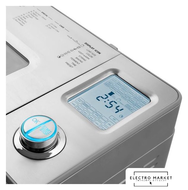 720 Вт, вес выпечки: 1000 г, регулировка веса выпечки, 20 программ выпечки, выбор цвета корочки, замес теста