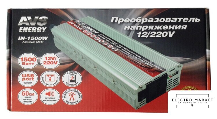 вход: 12 В, выход: 220 В, защита от короткого замыкания, от перегрузки, от перегрева, от низкого входного напряжения