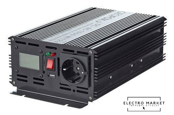 вход: 12 В, выход: 220 В, КПД: 92%, защита от короткого замыкания, от перегрузки, от перегрева, от низкого входного напряжения