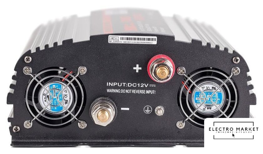 вход: 12 В, выход: 220 В, КПД: 92%, защита от короткого замыкания, от перегрузки, от перегрева, от низкого входного напряжения