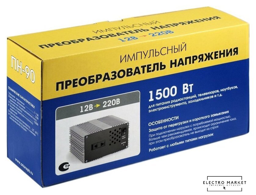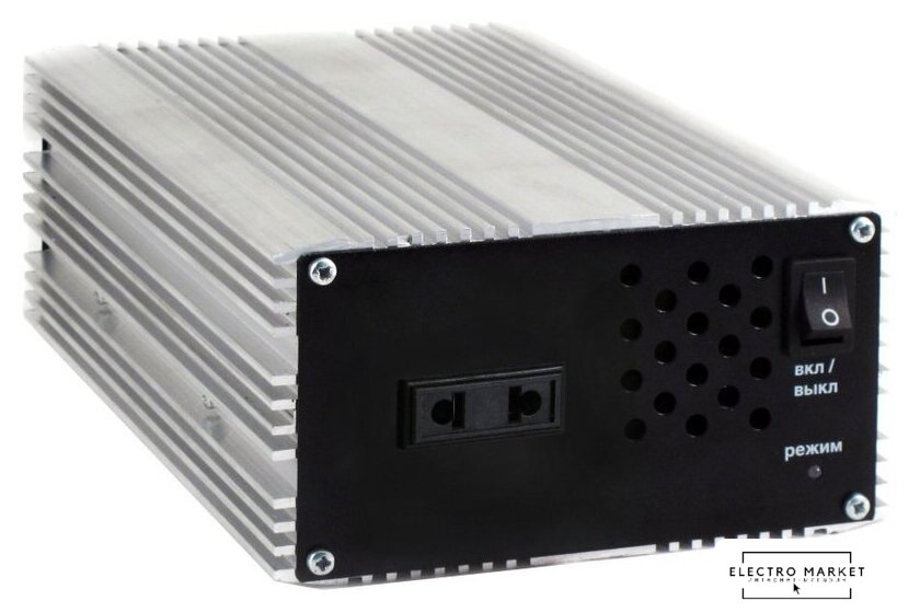 вход: 12 В, выход: 220 В, защита от короткого замыкания, от перегрева, от неправильной полярности
