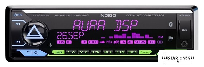 1DIN, USB-проигрыватель, USB, карты памяти, Bluetooth, усилитель 6x100 Вт, экран монохромный, пульт
