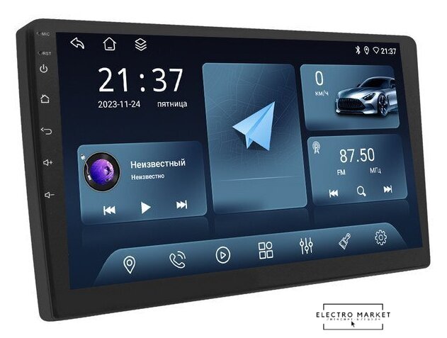 2DIN, USB-проигрыватель, USB, Bluetooth, усилитель 4x50 Вт, экран 9" цветной сенсорный, GPS