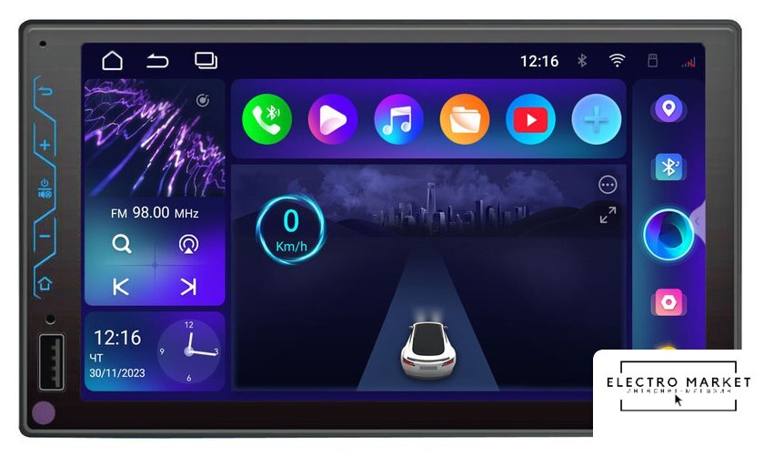2DIN, USB-проигрыватель, USB, Bluetooth, усилитель 4x50 Вт, экран 9" цветной сенсорный, GPS