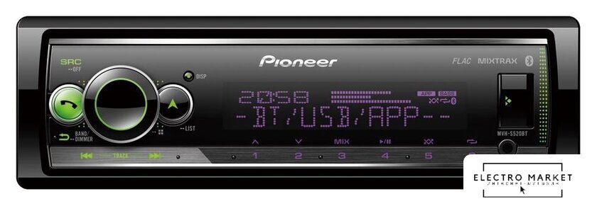 1DIN, USB-проигрыватель, USB, карты памяти, Bluetooth, усилитель 6x100 Вт, экран монохромный, пульт
