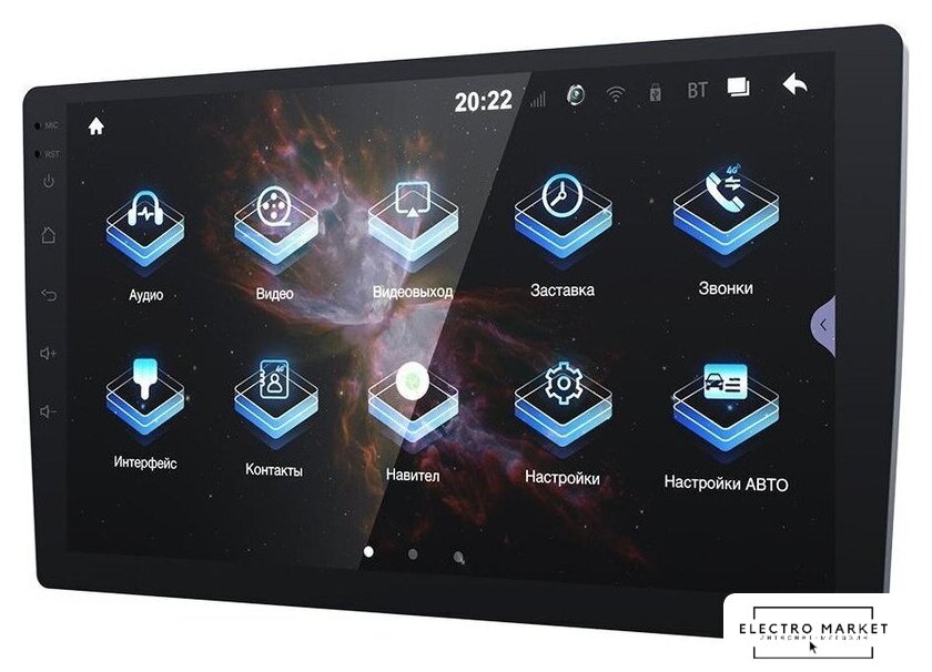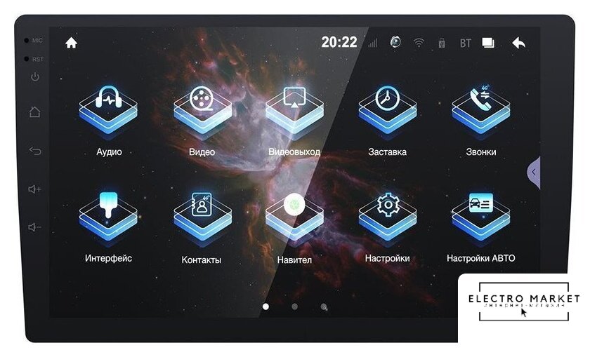 2DIN, USB-проигрыватель, USB, карты памяти, Bluetooth, усилитель 4x55 Вт, экран 9" цветной сенсорный, GPS