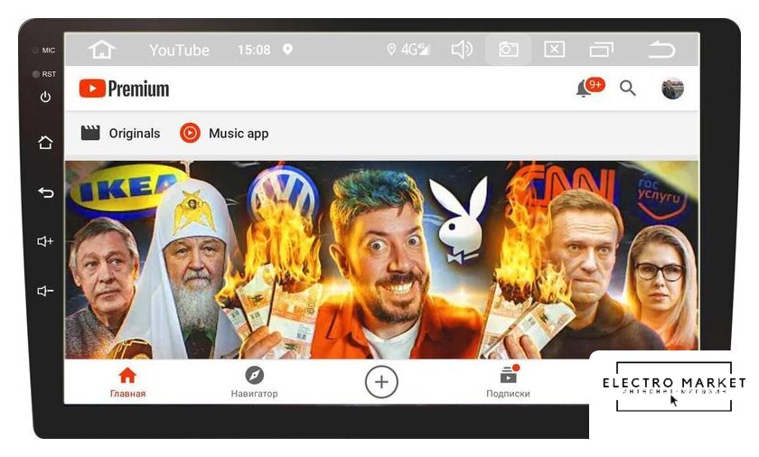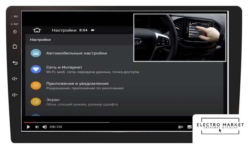 2DIN, USB-проигрыватель, USB, Bluetooth, усилитель 4x50 Вт, экран 9" цветной сенсорный, GPS